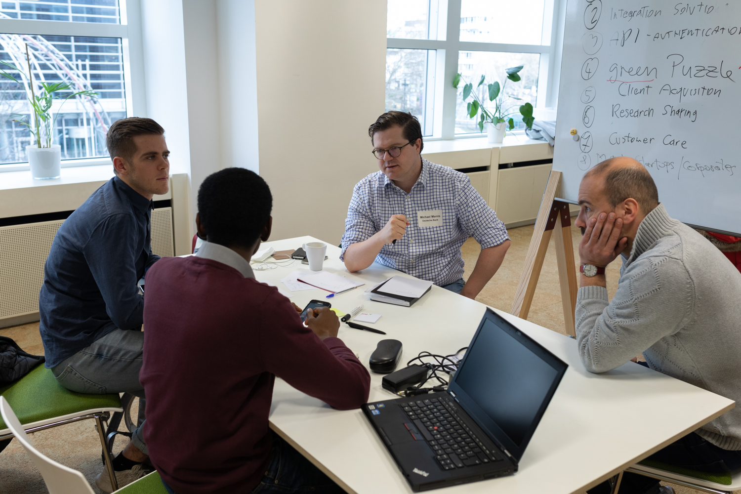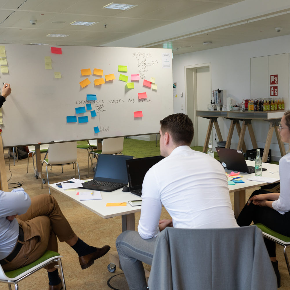 Four teams of four members, all gathered in TQ´s workshop room, each working on individual ideas with the aim to come up with different solutions to help startups and established players to cooperate and be able to jointly create value. The range of topics was intentionally broad.